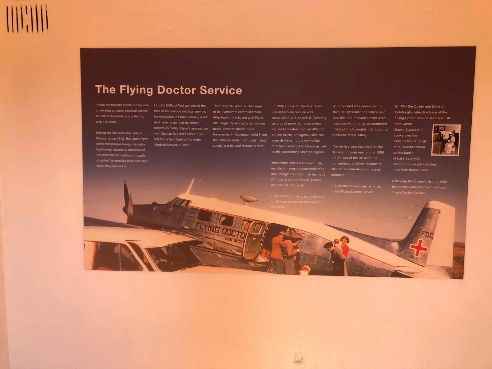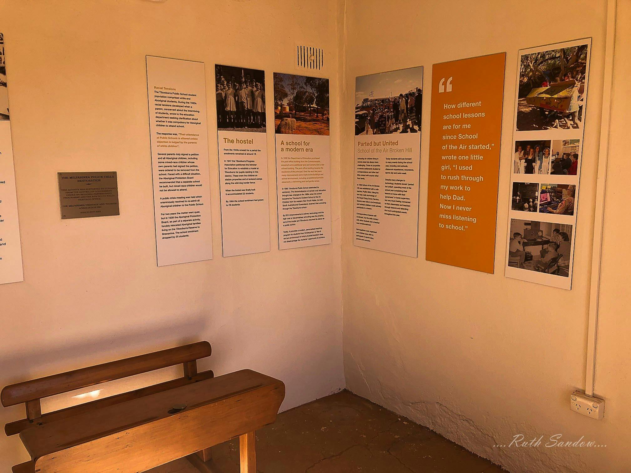 Outback Learning and Outback Health. The Milparinka Learning in the Outback Room is located in the first of the lock-up cells adjacent to the rear of the Courthouse. This room provides information about schooling in Milparinka from the 1880s when the first school was built through to the modern day when local children study through the School of the Air. The Milparinka Health in the Outback Room is located in the second of the lock-up cells adjacent to the rear of the Courthouse. This room provides information about healthcare in Milparinka from the 1880s, the construction of the first hospital in Tibooburra and the introduction of the Flying Doctor Service (now Royal Flying Doctor Service (RFDS)) into the area. There is also information about the RFDS today as it continues to be a vital provider of primary and emergency health care across the area.