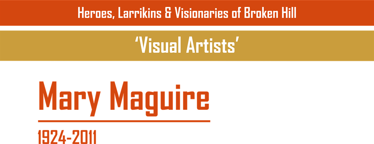 Born in Broken Hill in 1924, Mary Maguire was the second daughter to an English migrant father and locally born mother. Her father worked in the mines as a winder driver, operating the mechanism that hauls the ore up mining shafts from underground. Mary and her older sister Grace attended Morgan Street Primary School and North Broken Hill Primary School, then Broken Hill High School.